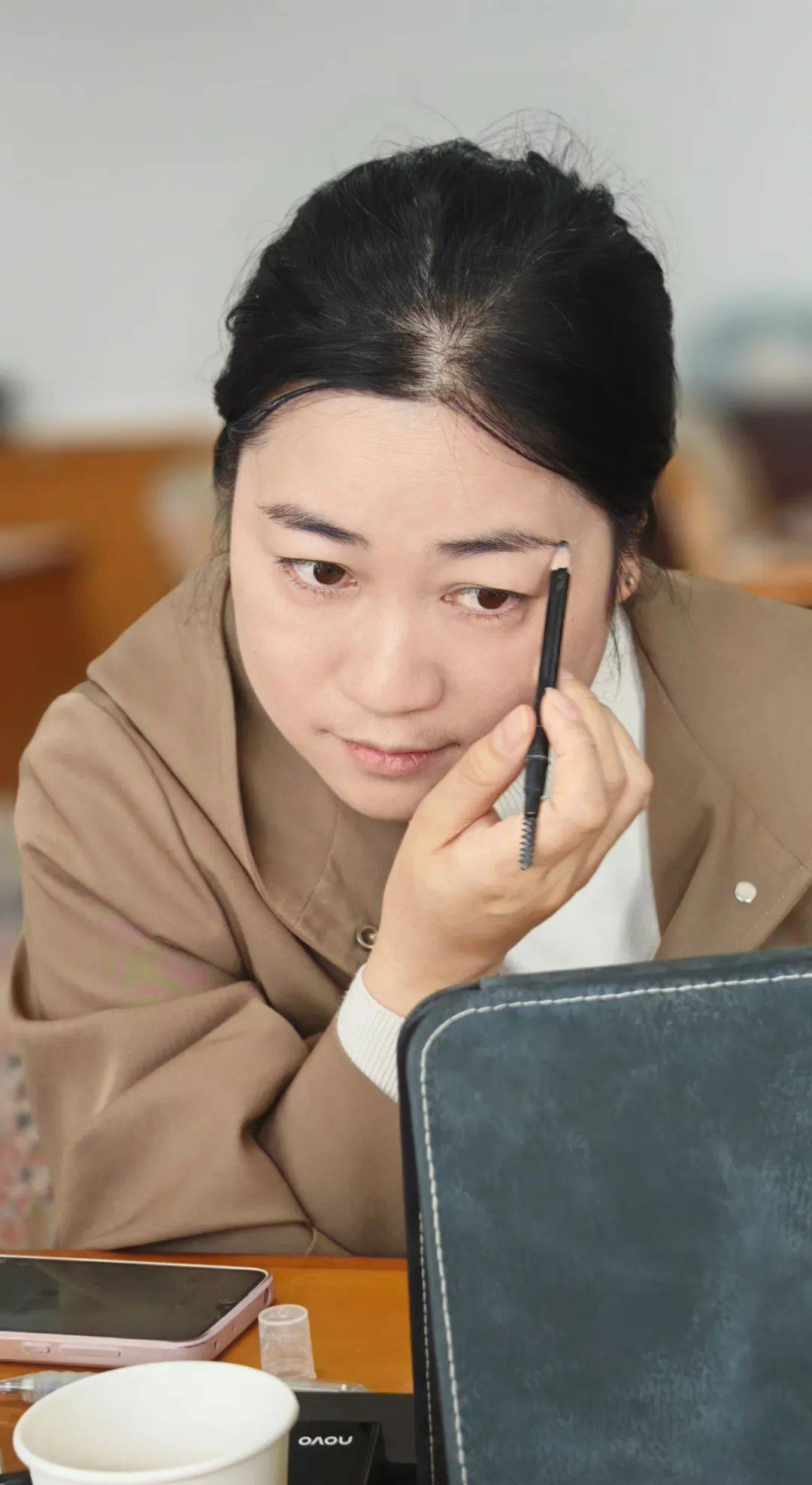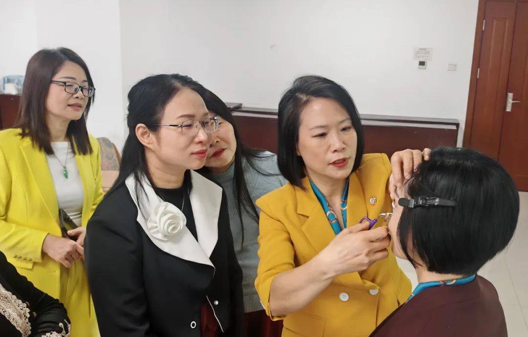 在彩妝技巧和方法環(huán)節(jié),葉老師重點(diǎn)分享了眼妝的畫法。她指出,眼影的暈染應(yīng)遵循“先淺后深”的原則,先用淺色眼影打底,再用深色眼影在眼尾處暈染,以增強(qiáng)眼部立體感。對于新手而言,使用工具輔助畫眼線可以避免手抖問題,這一技巧讓參訓(xùn)職工受益匪淺。